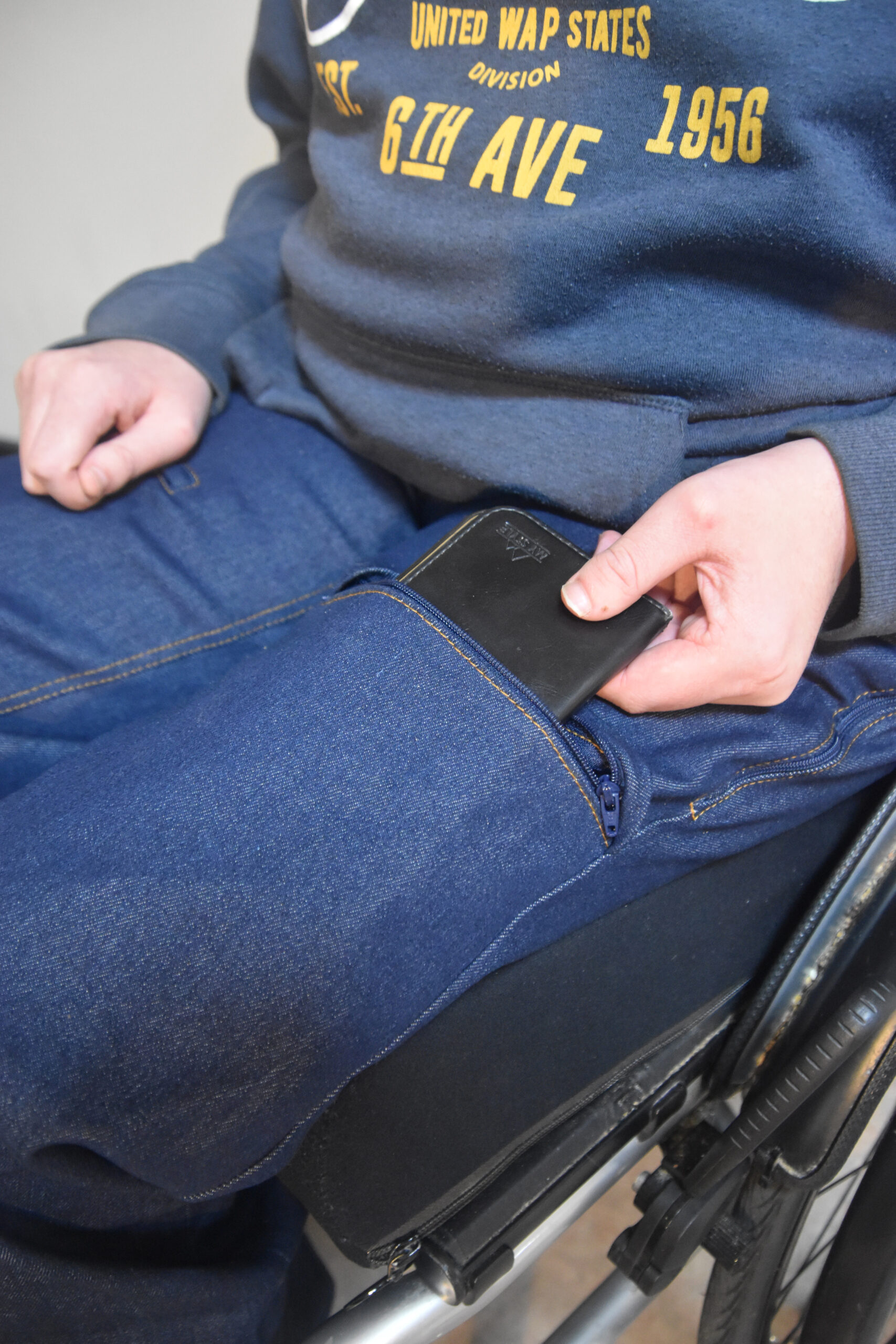- Gemakkelijk aan te trekken ritsen – Dubbele ritsen aan de zijkant met ringritstrekkers die speciaal zijn ontworpen om gemakkelijk aan te kleden terwijl u zit of ligt. Rits beide zijkanten dicht en de voorkant kan worden neergeklapt voor eenvoudig toiletbezoek en onderhoud van de katheter.